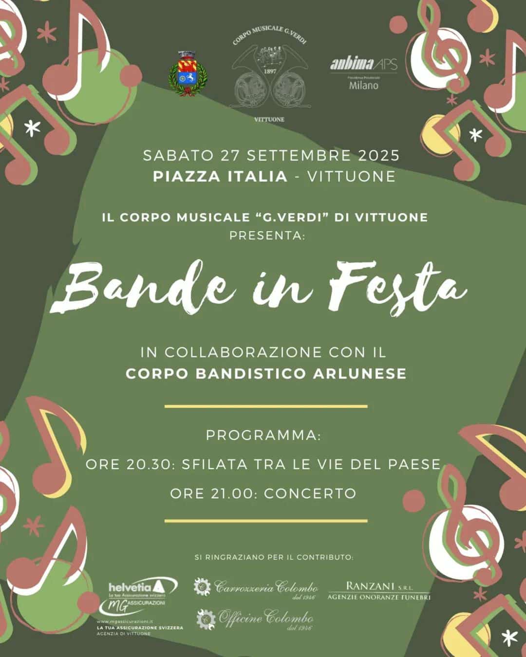Il Corpo Musicale Giuseppe Verdi di Vittuone in collaborazione con il Corpo Bandistico Arlunese presenta l'iniziativa