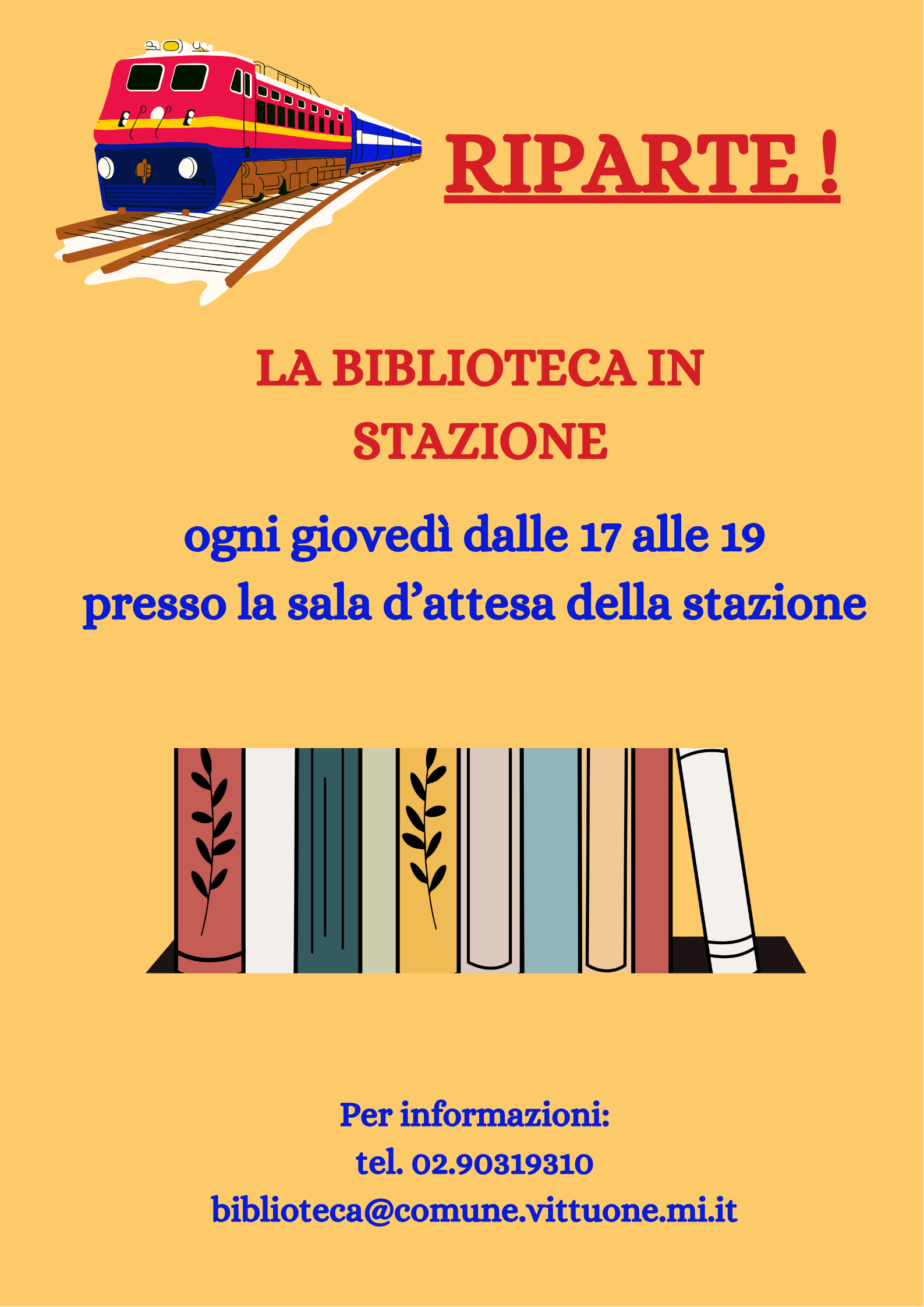 Il Comune di Vittuone è felice di informare tutta la Cittadinanza che riparte "La Biblioteca in Stazione", ogni giovedì dalle ore 17 alle ore 19 presso la sala d'attesa della stazione del Comune di Vittuone.